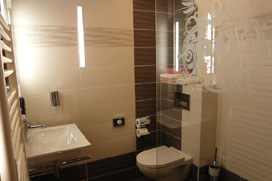 Alle Zimmer verfügen über komfortable, zeitgemäße Dusch- und Toiletteneinrichtungen mit dem gesamten Hygienesortiment unserer Partnerfirma ILLE. Handtücher und Seifen gehören zur Standardausstattung aller Zimmer.